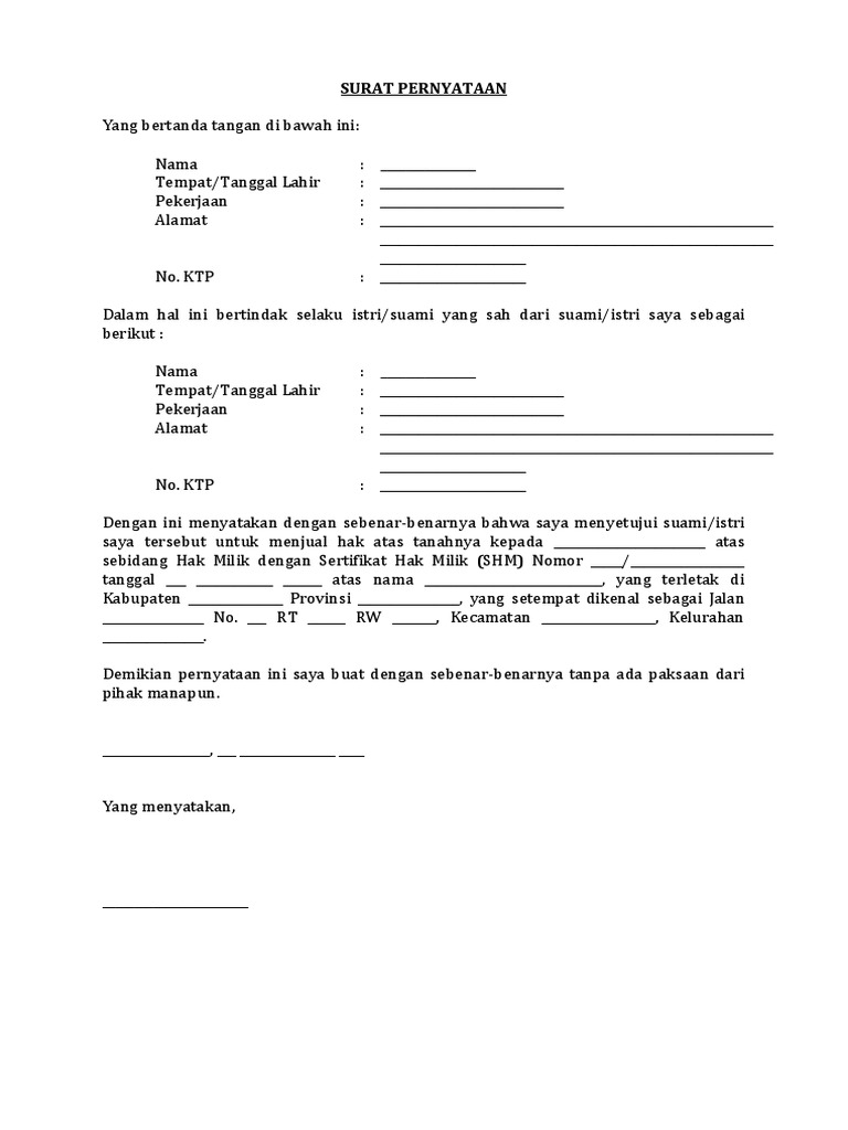 Surat Persetujuan Suami Istri Untuk Menjual Tanah Bangunan Pdf